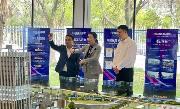 考察團(tuán)一行參觀了文昌里科創(chuàng)灣招商運(yùn)營中心,了解了項(xiàng)目的整體規(guī)劃、產(chǎn)業(yè)引進(jìn)、招商進(jìn)度、產(chǎn)業(yè)孵化、配套服務(wù)規(guī)劃等情況。
